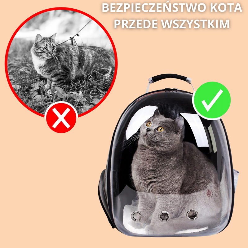 Większość kotów lubi ten transporter, ponieważ mogą obserwować otoczenie przez przezroczystą szybkę. Jeśli Twój kot nie jest przyzwyczajony do transportera, warto stopniowo go oswajać, np. zostawiając plecak otwarty w domu, aby kot mógł do niego wejść i poczuć się komfortowo.