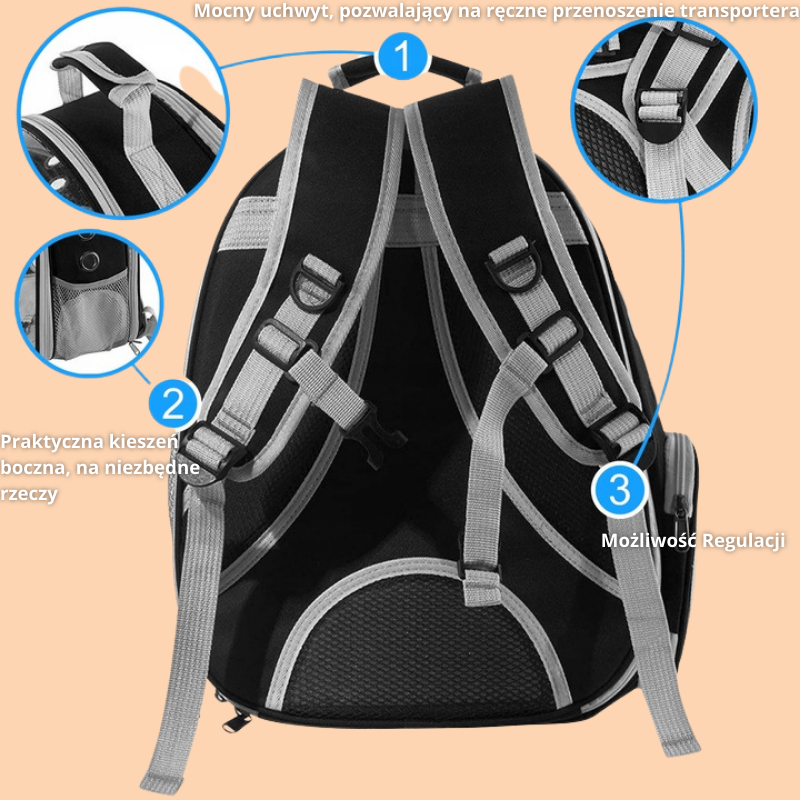 Pozwól swojemu pupilowi odkrywać świat z bezpiecznego, stylowego plecaka! Przezroczysty design umożliwia zwierzęciu obserwację otoczenia, jednocześnie pozostając widocznym dla Ciebie.