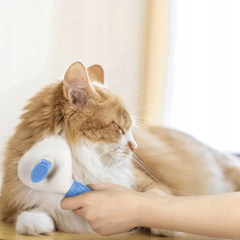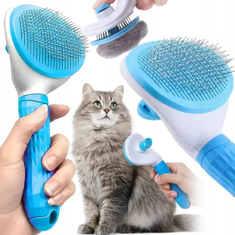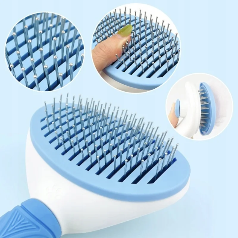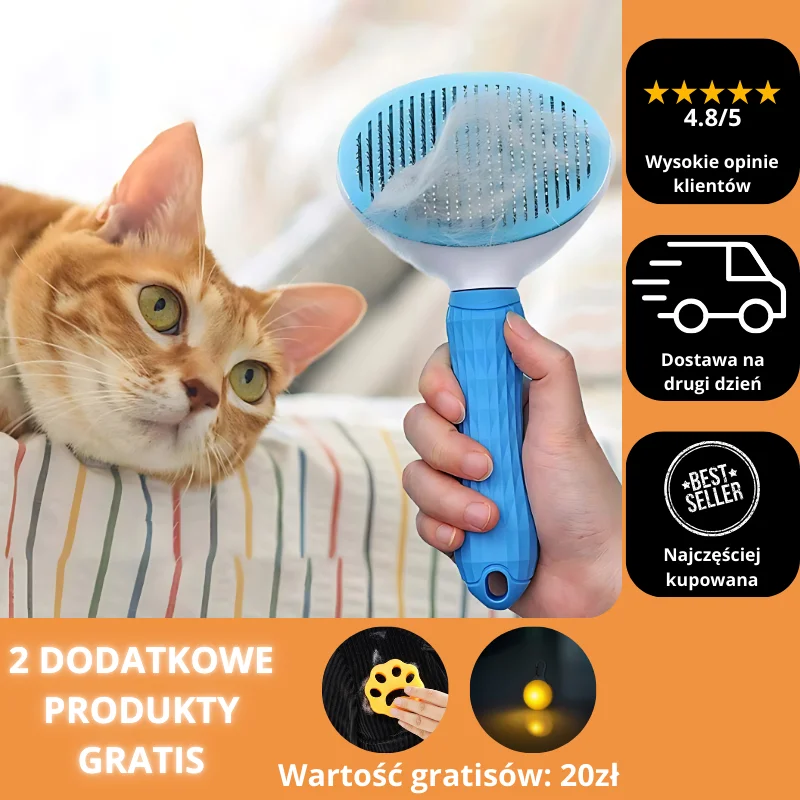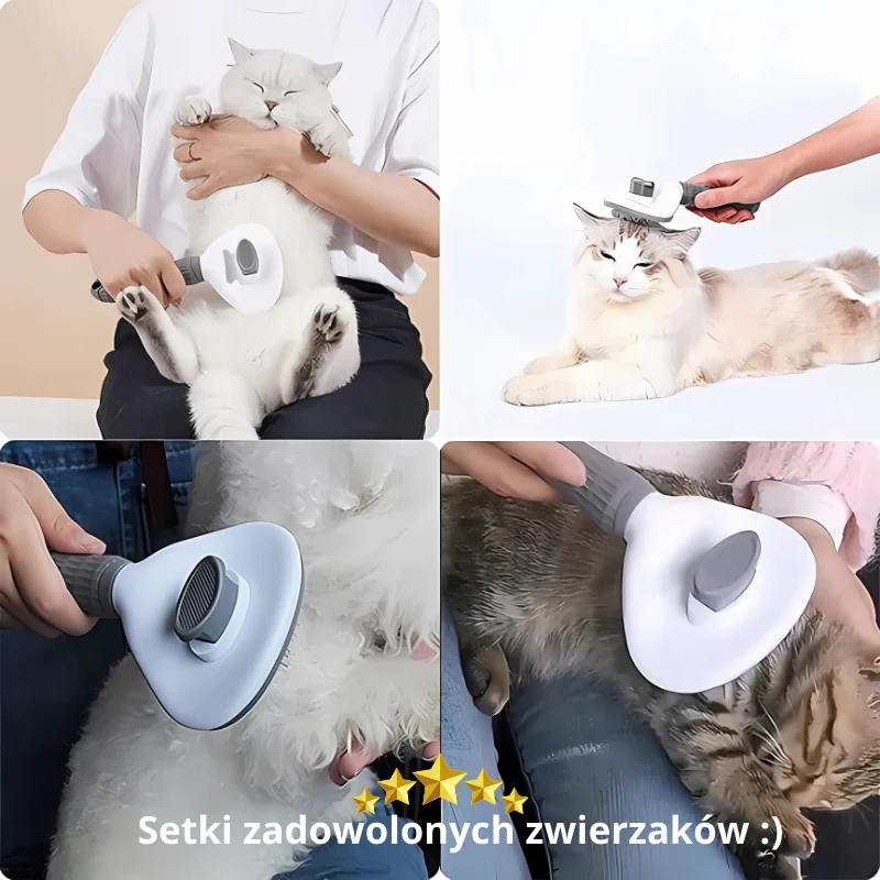 Super szczotka, można zapomnieć o uciążliwym wyciąganiu sierści ze szczotki, wciskamy przycisk i sierść sama wychodzi ze szczotki.