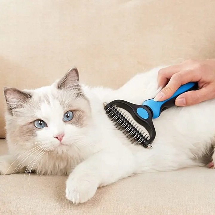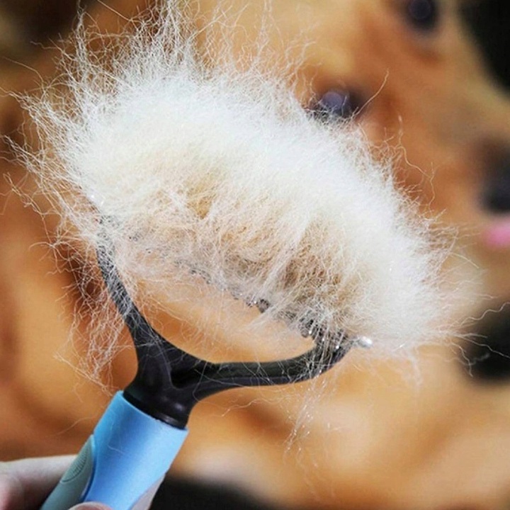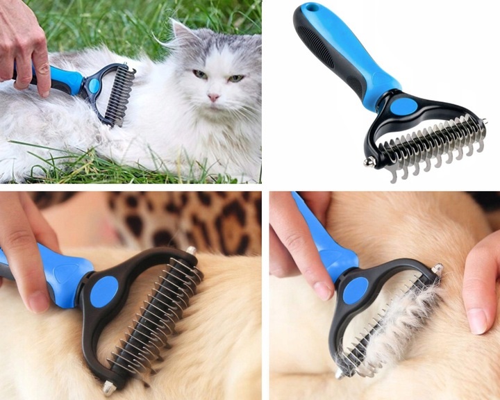 - Zgrzebło z zakrzywionymi zębami to najbezpieczniejsze rozwiązanie dla psa podczas usuwania starego podszerstka oraz splątanej sierści, kołtunów
